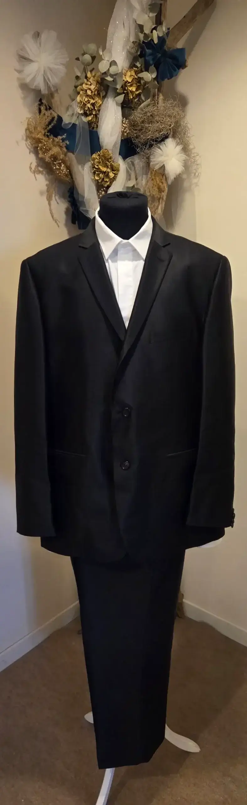 Élégante et intemporelle, cette veste et pantalon en satin noir de Studio Milano apportent une touche de sophistication à votre garde-robe. Parfait pour les événements formels ou les soirées chic, ce costume taille 60 allie confort et style. Tissu satiné de qualité, coupe moderne et finitions soignées. Idéal pour un look distingué.
